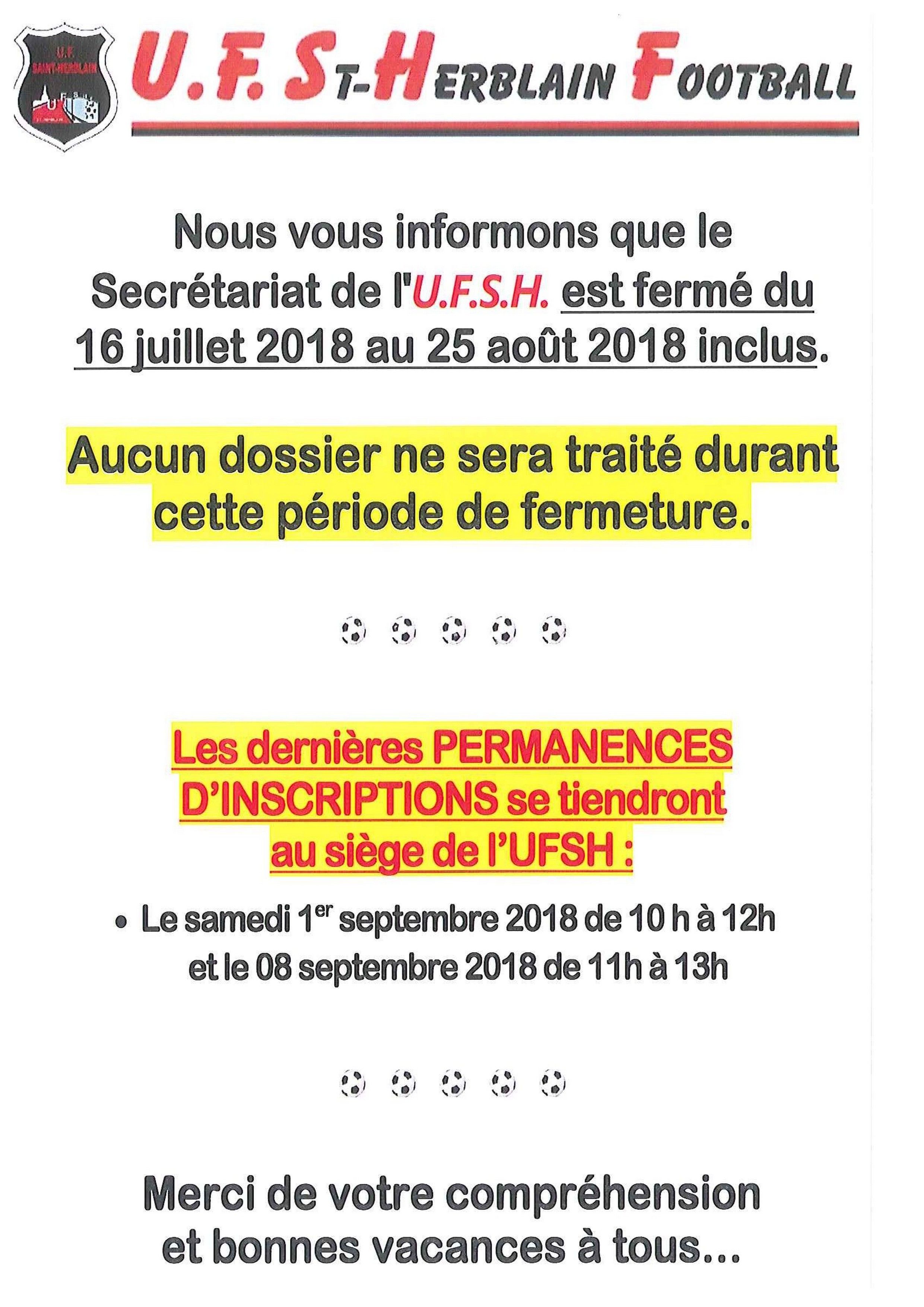 Inscription à l'U.F Saint-Herblain - Saison 2018/2019